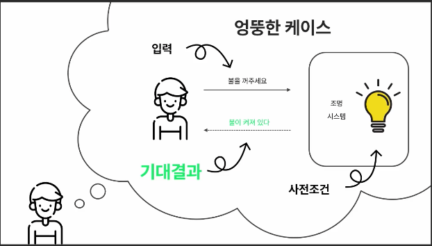 여기서 중요한 점은 '기대 결과'와 '실제 결과'가 동일하더라도 테스트가 틀릴 수 있습니다. 입력 정의와 사전 조건에 따른 처리로직 모두 잘못 구현을 하는 경우 비정상인 부분이 정상으로 둔갑 될 수 있습니다.