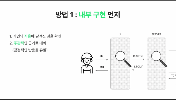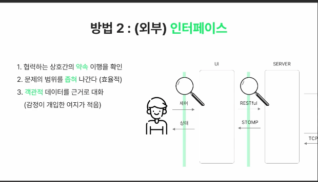 두번째 내용까지는 혼자서 개발하는 영역까지의 이야기인 것 같습니다. 세번째 내용은 다른 사람과 함께 개발하는 상황에서 문제를 정의하고 해결하는 방법에 대한 이야기 입니다.