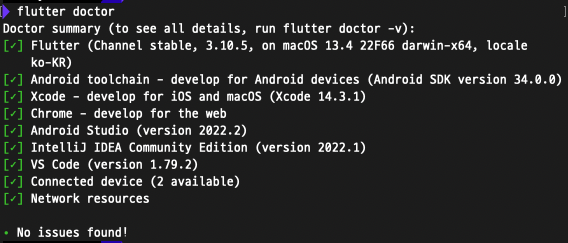 - flutter doctor 실행