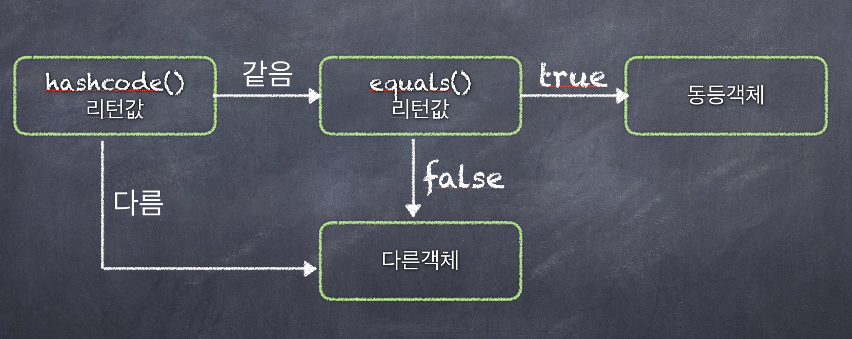그 이유는 Hash가 붙은 자료구조들이 아래와 같은 방식으로 객체를 비교하기 때문이다.